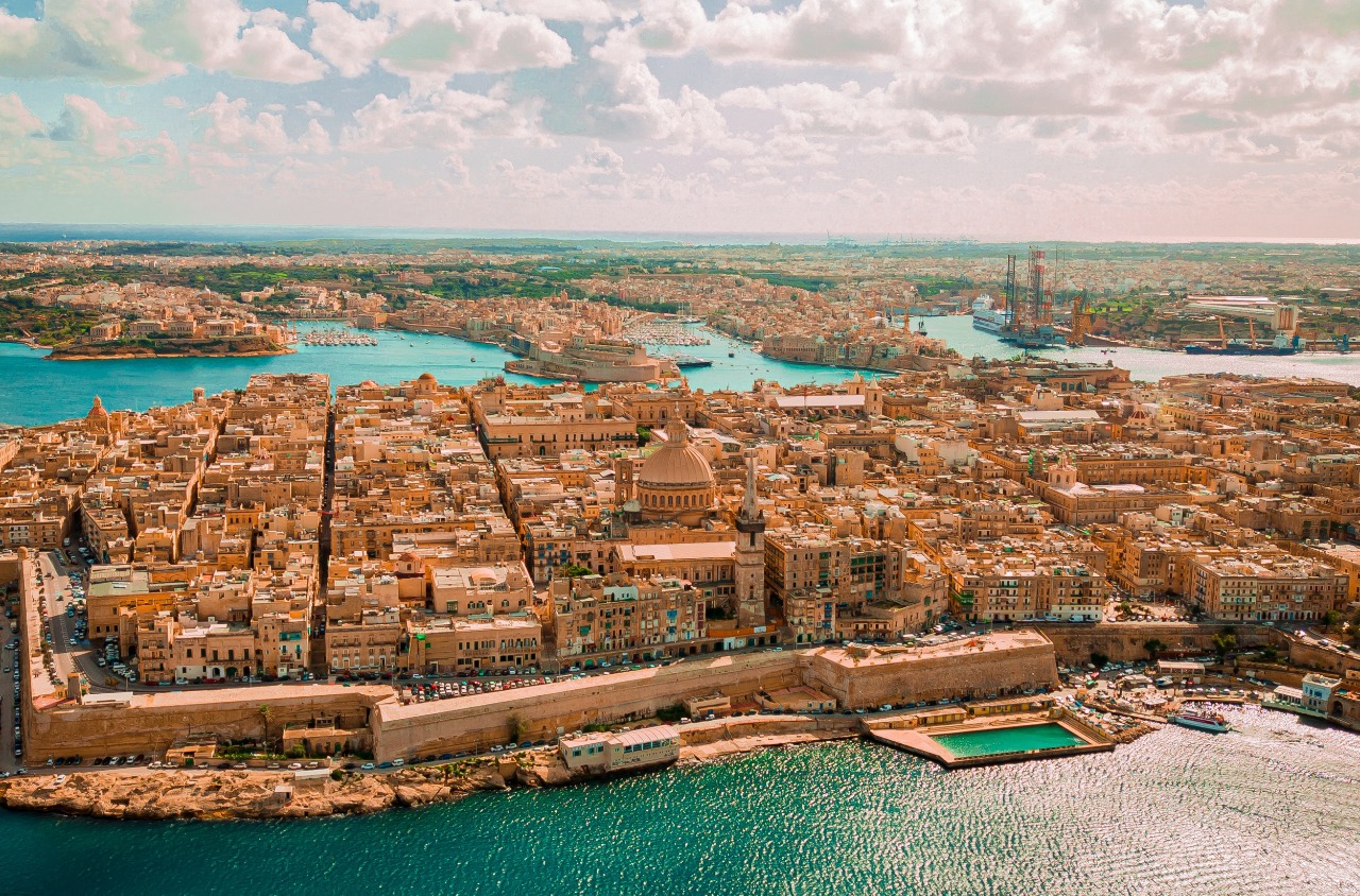 Es uno de los estados más densamente poblados, compuesto por un archipiélago y situado en el centro del Mediterráneo, al sur de Italia, al este de Túnez y al norte de Libia. Malta es un popular destino turístico con su clima cálido, numerosas áreas recreativas y monumentos arquitectónicos e históricos, incluidos tres sitios del Patrimonio Mundial de la UNESCO: el Hipogeo de Hal Saflieni, La Valeta, y siete templos megalíticos que son algunas de las estructuras independientes más antiguas en el mundo.